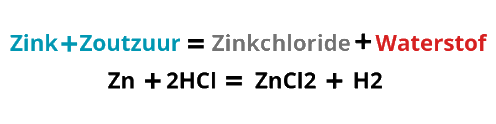 Op de afbeelding zie je hoe zink reageert met zoutzuur. Daarbij ontstaat zinkchloride (een zout) en waterstofgas. De gasbelletjes die je ziet, zijn het vrijgekomen waterstofgas.